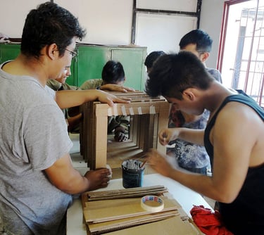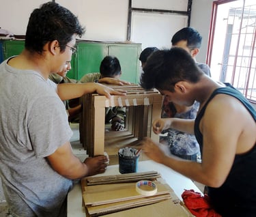 Talleres solidarios: Creación de mobiliario, juguetes y accesorios para albergues, centros de formación y familias afectadas por desastres naturales.