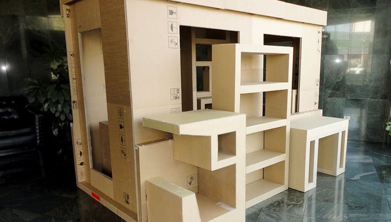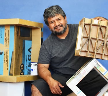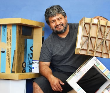 La unión hace la fuerza. La ingeniería de la estructura interna en muebles, juguetes, accesorios o esculturas se basa en un concepto social y la interpretación de los valores a través de los colores de la Wiphala. En el interior, pequeños pedazos de cartón, sin importar su origen o condición, se apoyan unos a otros distribuyendo la carga por toda la estructura.