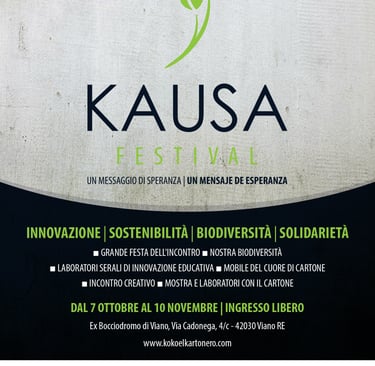 #KausaViano #KausaFestival #KokoElKartonero #Enkarte #sostenibilità #riciclo #creatività #Viano #biodiversità